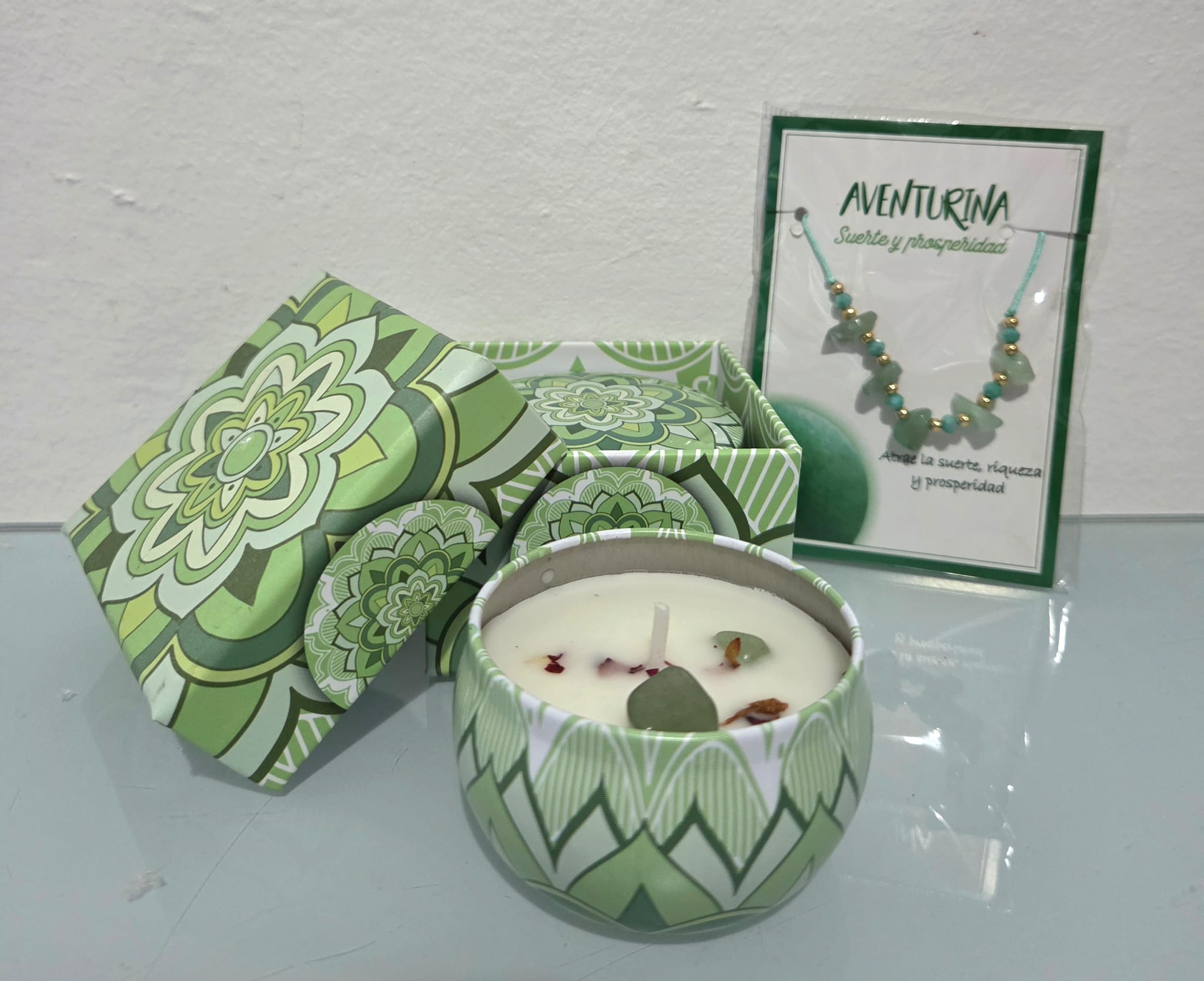 kit vela & pulsera/collar Vainilla Aventurina