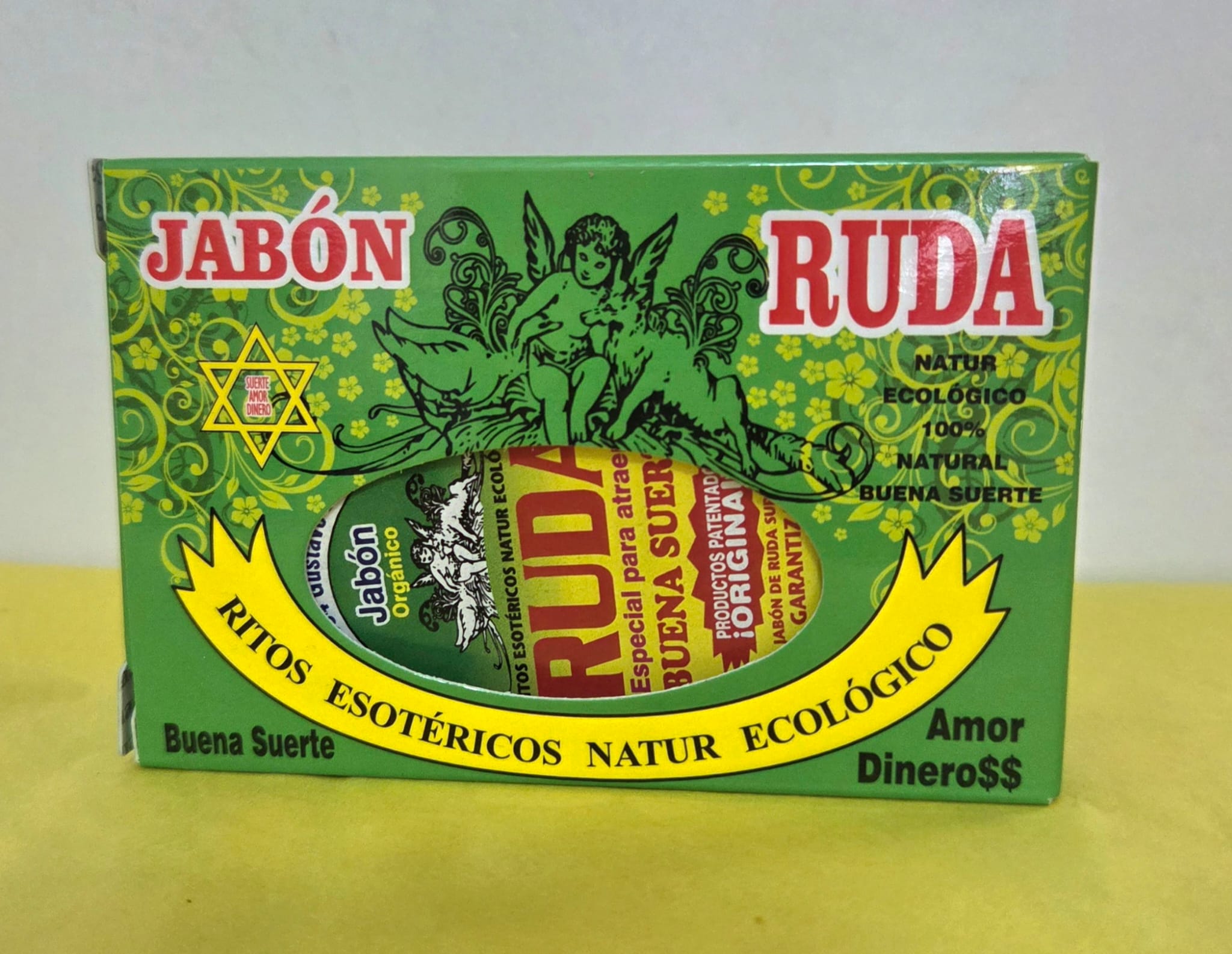 Jabón esotérico 80 ml de Ruda, ideal para limpiezas energéticas intensas, protección y corte de envidias. Incluye un amuleto de regalo para potenciar su efecto espiritual